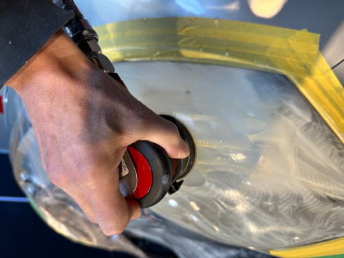 コーティングを塗布する塗装面を研磨作業にてボディーを平滑した後、専用の溶剤を瞬時に燃焼させて
