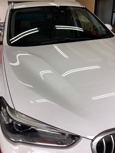 ボンネットに映り込むLED灯の光を見るとわかりやすいですが、新車時の塗装面と比較すると、かなり鮮明な写り